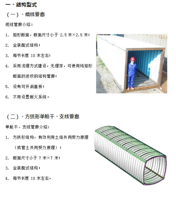 ① 截面形狀多為拱形或圓形,空間利用率比矩形管廊小 1/3~2/5,直接影響投資;