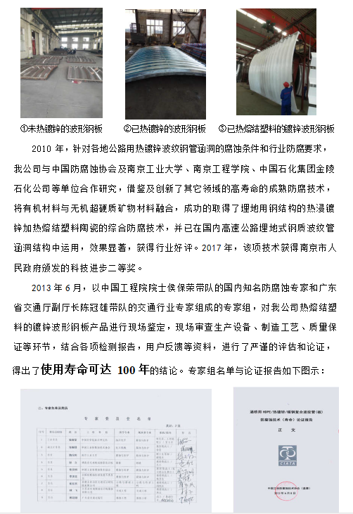 一、最早的波紋鋼綜合管廊在德國耶拿市,建于 1945 年,內部設置有蒸汽管道、給水管道和電纜,已使用 73 年,采用熱浸鍍鋅防腐,使用狀態良好,國內已經有多批專家前往考察參觀。